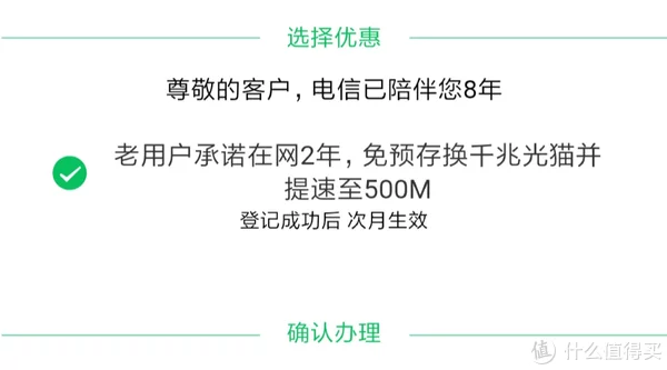 打开页面,大概知道是怎么回事了:电信光纤老用户提速。不如狗的老用户终于要站起来了吗?经验告诉我:看宣传页面,小字的注意事项才是关键!
