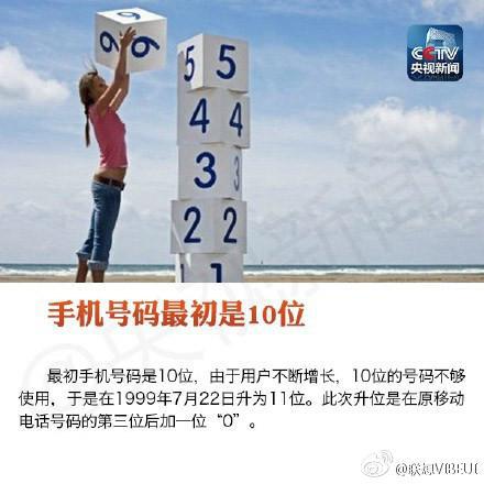 自1999年7月22日零时起,我国数字移动电话号码全面升至11位。这一升位至少要拿几项第一:我国第一次全国性电话号码升位;中国移动电话第一次升位;世界规模最大的一次号码升位;我国将是国际电联成立以来第一个拥有11位号码的国家。